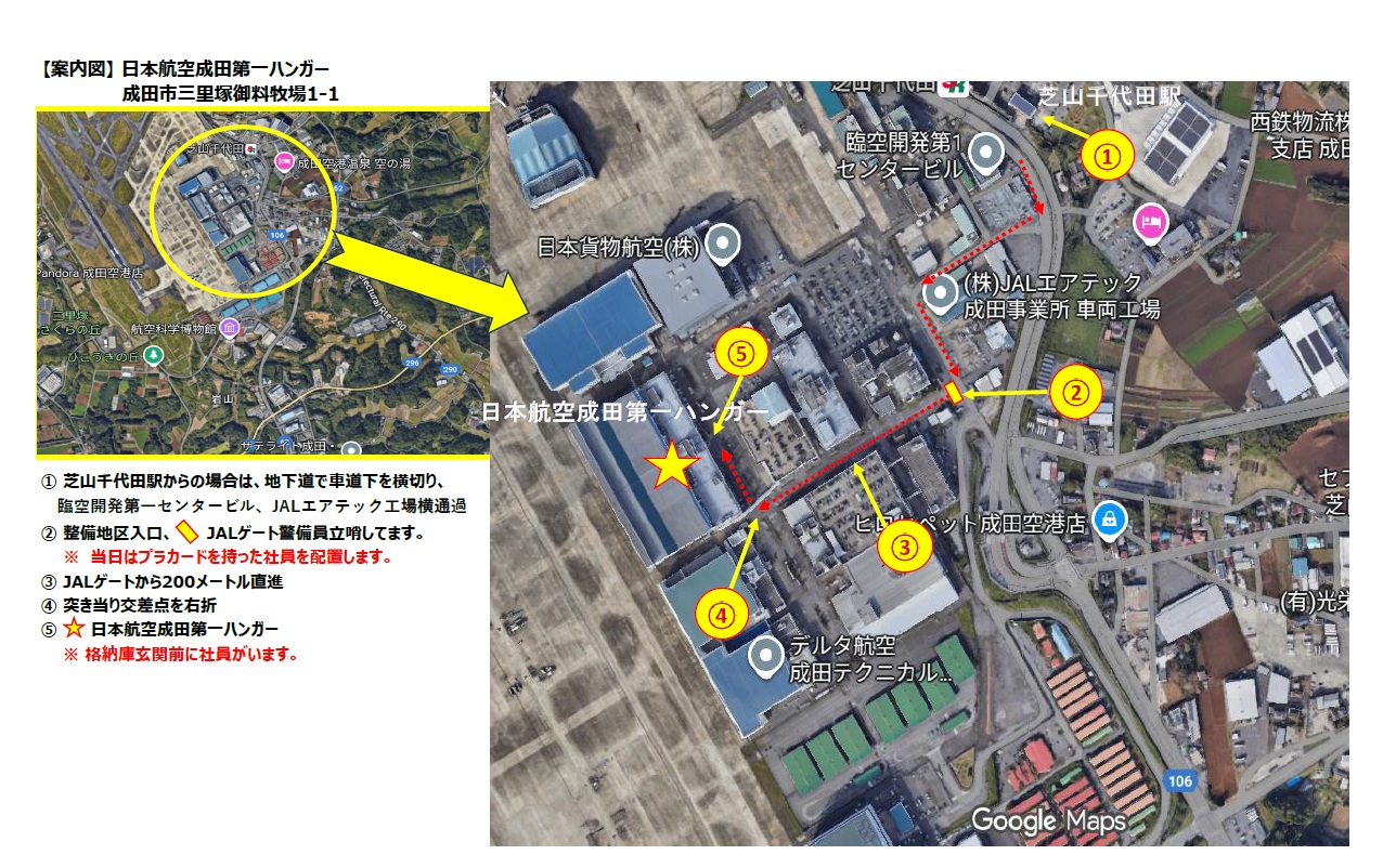 〒282-0011千葉県成田市三里塚御料牧場1-1日本航空成田第一ハンガー